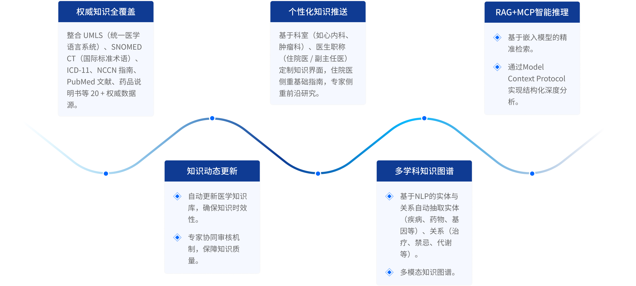 三大场景覆盖 | 解决医学痛点 | 双驱医学引擎 | 四化智能支撑 | 权威知识网络